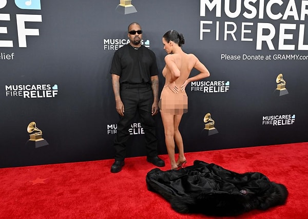 2025 Grammy’lerinin skandalları bununla kalmadı tabii! Kanye West’in eşi Bianca Censori kırmızı halıda, kendisini neredeyse çıplak gösteren bir kıyafetleydi! Bazı platformlar görüntüleri sansürlemek zorunda kaldı. Ama herkes aynı fikirdeydi, Grammy tarihinde böyle bir an daha önce yaşanmamıştı. Kanye’nin yüzündeki rahatlık, sosyal medyada “Planlı provokasyon.” teorilerini gündeme getirdi. Ve o görüntüler uzun süre gündemden düşmedi!